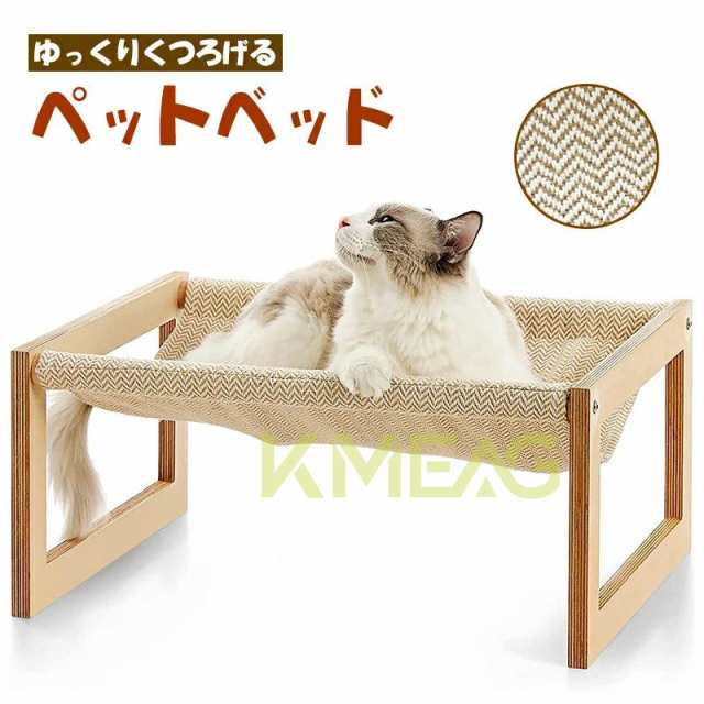 猫ハンモック 猫ベット 木製 ベッド キャット ハンモック 猫ソファー 自立式 置き式 小型犬 キャットハンモック 据え置き スタンド 安定な構造 床置き 組立簡単 洗える 室内用 猫用 犬用 小型犬 猫用品 ねこ ネコ 寝床 寝具 ベット 地面から離れ