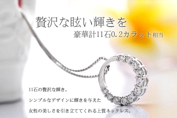 ネックレス レディース 贅沢11粒 リング プレゼント 女性 プラチナ仕上 シルバー925 女性 プレゼント 彼女 嫁 妻 娘