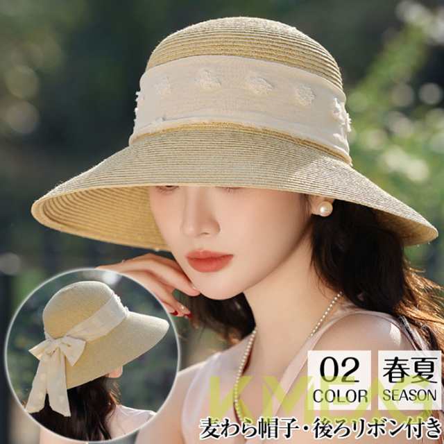 ストローハット リボン 麦わら帽子 レディース 帽子 レディース つば広 リボン 夏 春夏 麦わら つば広 ペーパーハット 日焼け対策 UV 蝶結び リボン ハット 折りたたみ プレゼント エレガント 母 お出かけ 海 ビーチ 水着コーデ 紫外線 日よけ帽