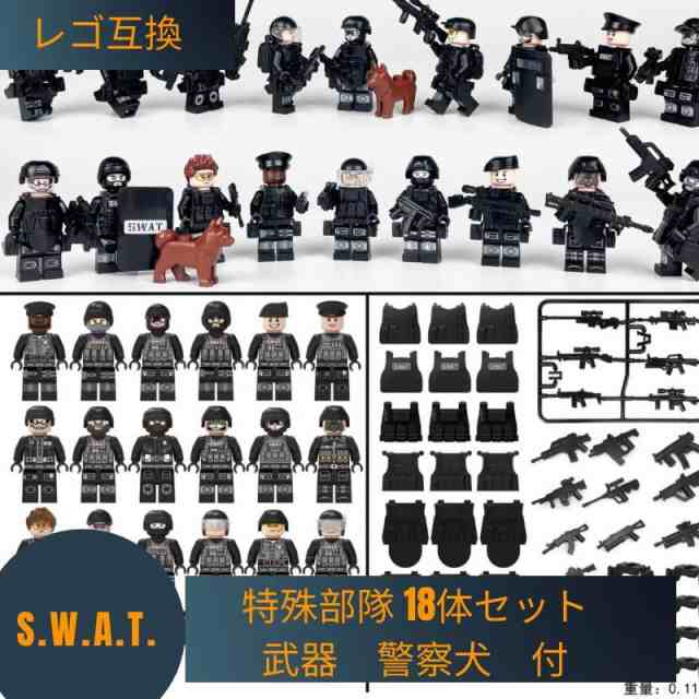 レゴ 互換 ブロック SWAT 警察 特殊部隊 18体セット 武器 警察犬 付 スワット 子供 男の子 レゴブロック おもちゃ 人形 誕プレ 軍隊 ミリタリー 武器 兵隊