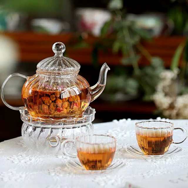 2点セット 手作り 600ml 耐熱 ティーポット 茶こし付き ガラス ガラスキャンドル保温ウォーマン ガラスポット ジャンピング 紅茶ポット フルーツティー 花茶 工芸茶 に ガラス急須 直火可【セット買いがお得】【送料無料】