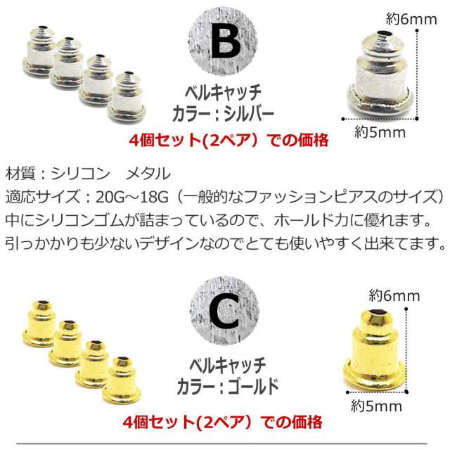 ピアス キャッチ 20G 18G 16G パーツ サージカルステンレス シルバー シリコン 樹脂 ベルキャッチ 金属アレルギー 留め具 予備用 アクセサリー つけっぱなし バタフライ 1-2001