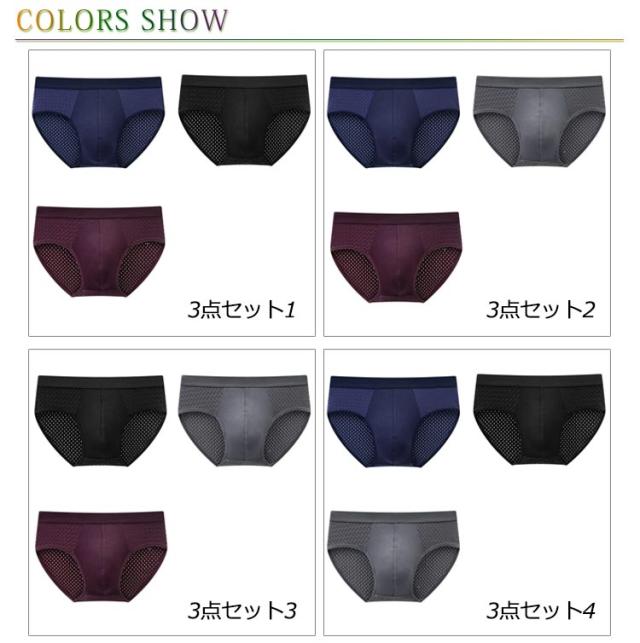 メンズ ブリーフ 3枚入り ブリーフパンツ ショーツ インナー 下着 男性 アンダーウェア メッシュ 薄手 無地 通気性 蒸れない 紳士 パンツ メンズ下着 セミビキニブリーフ 接触冷感 おしゃれ 大きいサイズ L XL 2XL 3XL 4XL