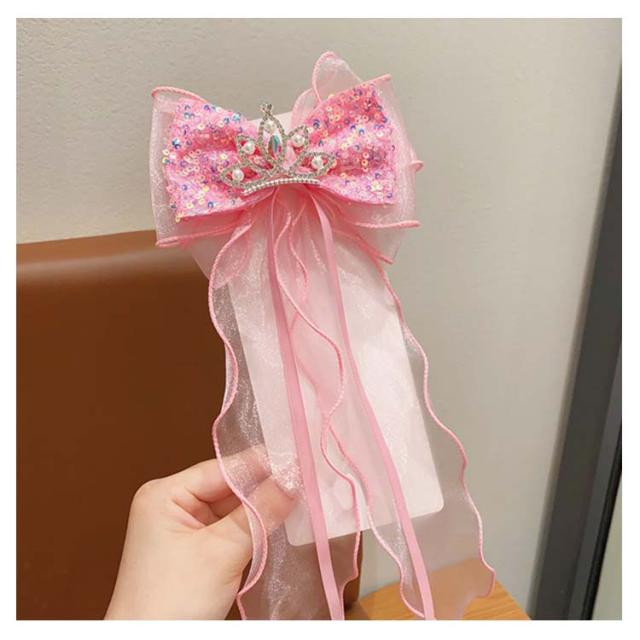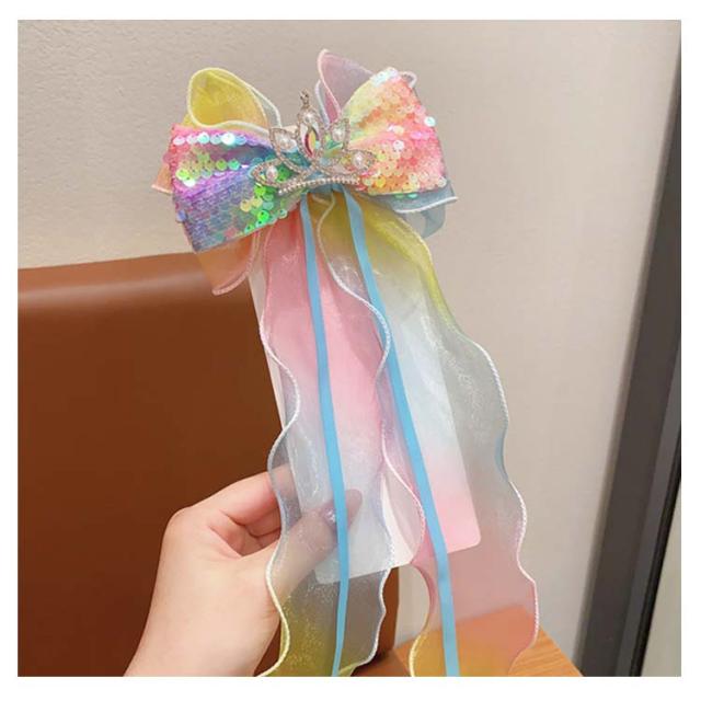 リボン ヘアピン 女の子 2個セット 入園式 ハンドメイド 子供 キッズ ヘアアクセサリー オーガンジー シア? リボン 発表会 入学式 ロングリボン 結婚式 卒業式 大人っぽい 大人可愛い リボン スパンコール キラキラ