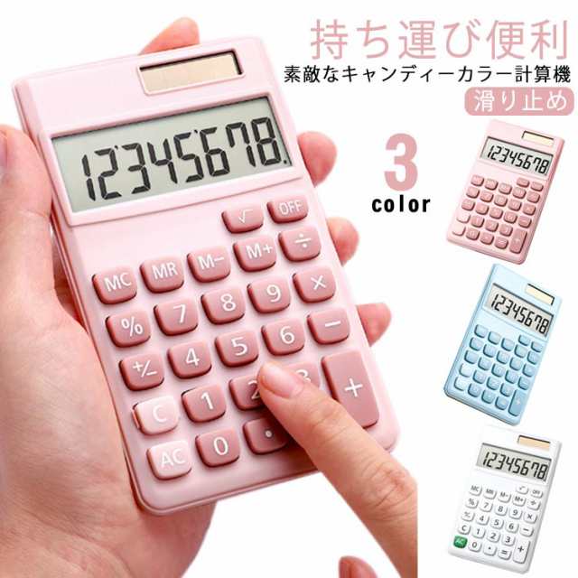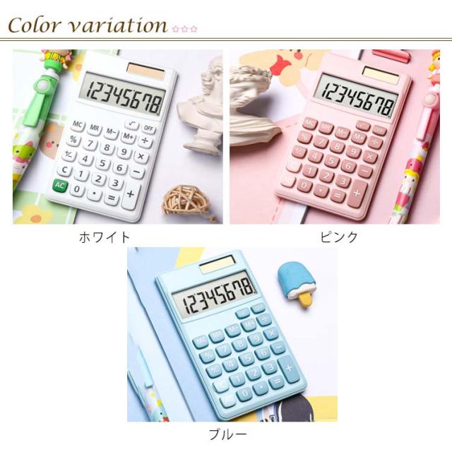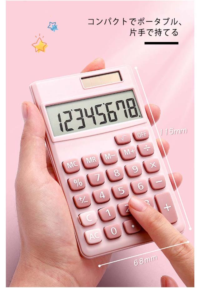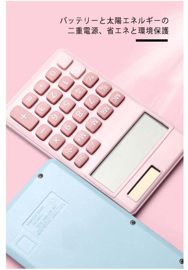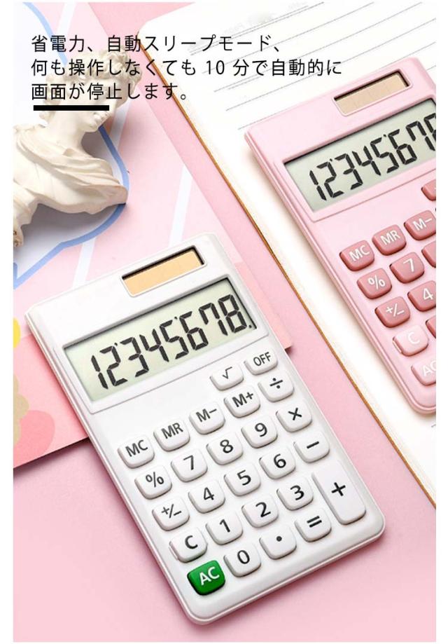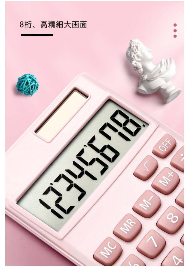 | 素敵なキャンディーカラー計算機 コンパクトでポータブル、片手で持てる 8桁、高精細大画面 打鍵音の静かな立体凹キー バッテリーと太陽エネルギーの二重電源、省エネと環境保護 省電力、自動スリープモード、何も操作しなくても 10 分で自動的に画面が停止します。 | |