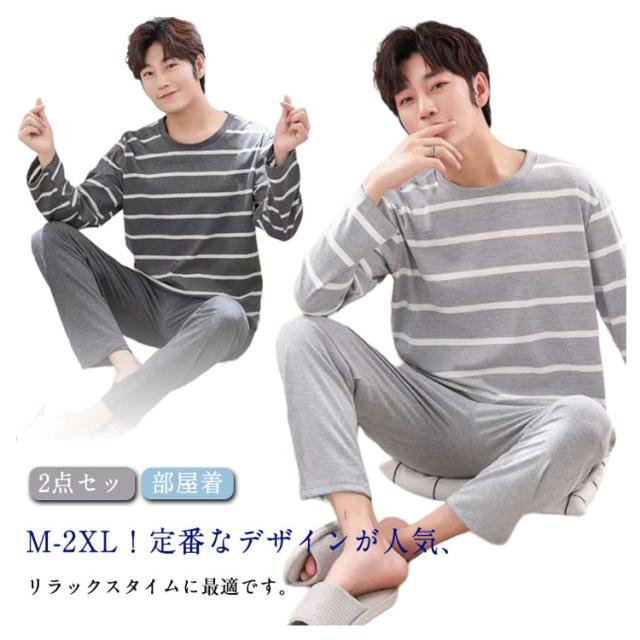 薄手 長袖Tシャツ 男性 セットアップ 春 部屋着 上下セット ボーダー柄 長ズボン プレゼント 2点セット ルームウェア 秋用 パジャマ リラックスウェア 父の日 寝間着 ルームウェア お洒落 パジャマ メンズ 秋 カジュアル 部屋着 大きいサイズ 春 夏 秋 冬