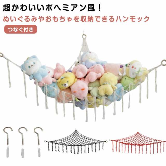| 超かわいいボヘミアン風!ぬいぐるみやおもちゃを収納できるハンモック 三角形構造なので安定して使え、ぬいぐるみやおもちゃをハンモックに載せてかわいく浮かせて収納出来ます。 ざっくりとした網目とフリンジがおしゃれで、ちょっとした子供部屋のアクセントになります。 これなら床におもちゃが散らばらなく、お掃除も楽にできます。 使わないときは、コンパクトにまるめて収納することができるから、便利です。 | |