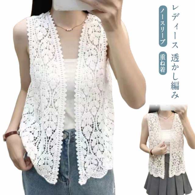 レディース ジレ サマー ベスト ニット レディース ジレ レディース おしゃれ ベスト べスト 前開き ベスト 大きいサイズ トップス レディース ベスト 春夏 ミドル丈 透かし編み ノースリーブ