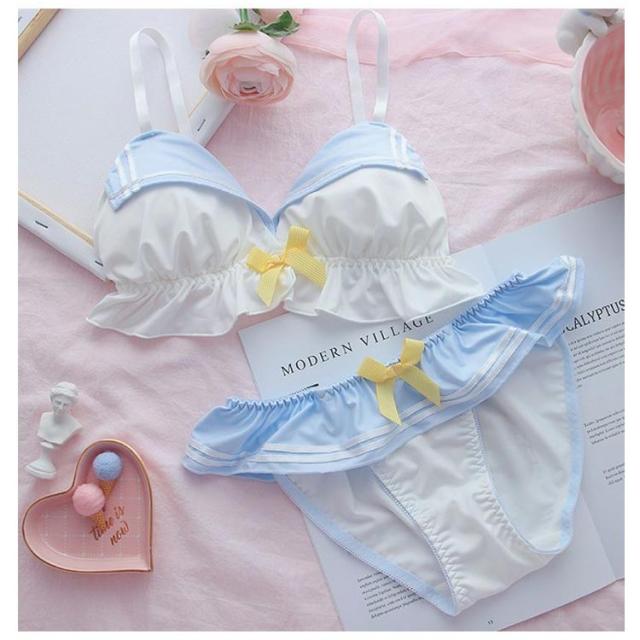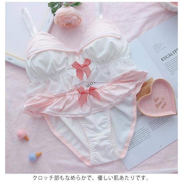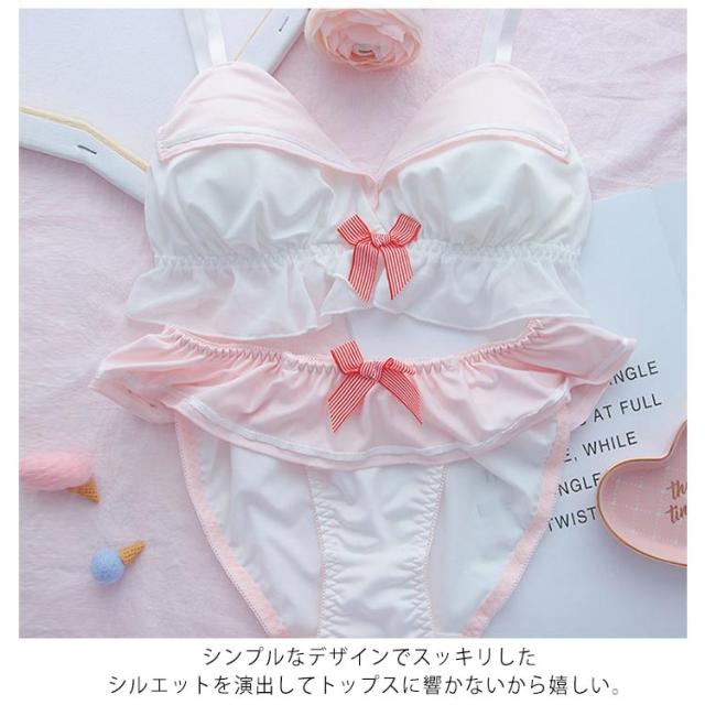 谷間ブラ ロリータ ショーツ ブラセット ブラショーツ ブラ レディース シンプル セットアップ ブラジャー 小胸 ショーツセット 上下セット 2点セット ブラセット ファーストブラ ブラジャー ランジェリー 学生 可愛い 少女 通気性 女性 ブラ ショーツ セクシー
