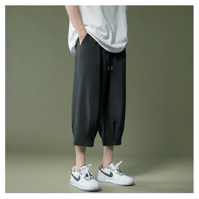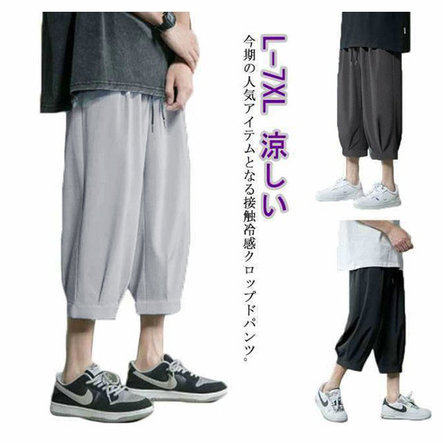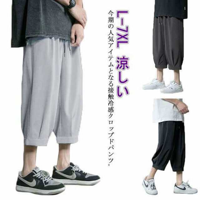 クロップドパンツ メンズパンツ 7分丈 アイスシルク パンツ 送料無料 ひんやり 春 夏 ボトムス 涼しい 接触冷感 アメカジ 男子 大きいサイズ ゆったり リラックス ウェストゴム イージーパンツ 半ズボン ワイドパンツ カジュアル 父の日 ギフト