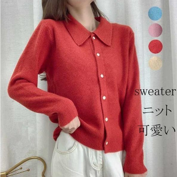 カーディガン 秋冬 レディース 長袖 ニット トップス アウター 折襟 前開き おしゃれ シンプル カーデ セーター ボタン留め 可愛いい 20代 30代