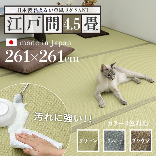い草風ラグ SANI 江戸間4.5畳 幅261 奥行261cm 日本製 国産 洗えるペット対応ラグ 畳風ラグ 夏 ラグ 洗える リバーシブル ペットラグ ラグ ペット用 防水 洗える 手洗いOK 軽量 傷防止 和モダン ラグマット ゴザ ラグマット ゴザ 寝ござ 夏ラグ 夏用