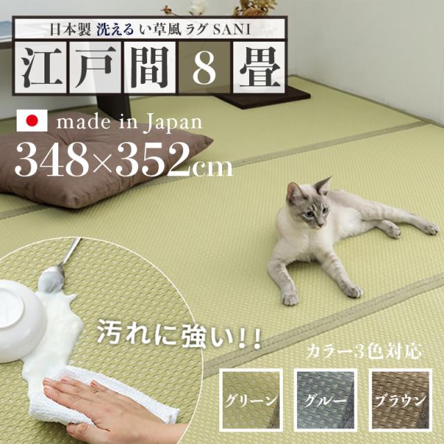 い草風ラグ SANI 江戸間8畳 幅348 奥行352cm 日本製 国産 洗えるペット対応ラグ 畳風ラグ 夏 ラグ 洗える リバーシブル ペットラグ ラグ ペット用 防水 洗える 手洗いOK 軽量 傷防止 和モダン ラグマット ゴザ ラグマット ゴザ 寝ござ 夏ラグ 夏用
