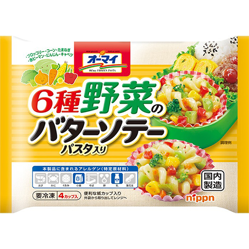 ニップン オーマイ 6種野菜のバターソテー パスタ入り 104g(4個) ×15個 (冷凍)野菜主体で彩り 便利な紙カップ入り