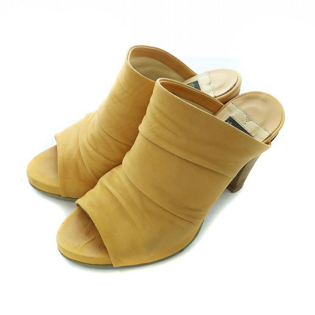 【中古】ヒミコ 卑弥呼 ミュール サンダル オープントゥ チャンキーヒール レザー 23.5cm マスタード