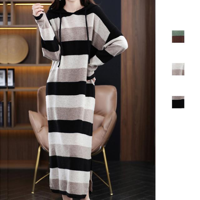 ワンピ ワンピース ニットワンピ ニットワンピース パーカー プルオーバーパーカー フード ボーダー 韓国 ファッション 長袖 レディス レディース 秋冬 新作
