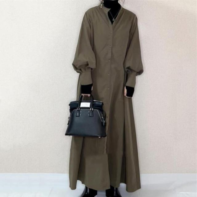 バルーンスリーブロング丈シャツワンピース