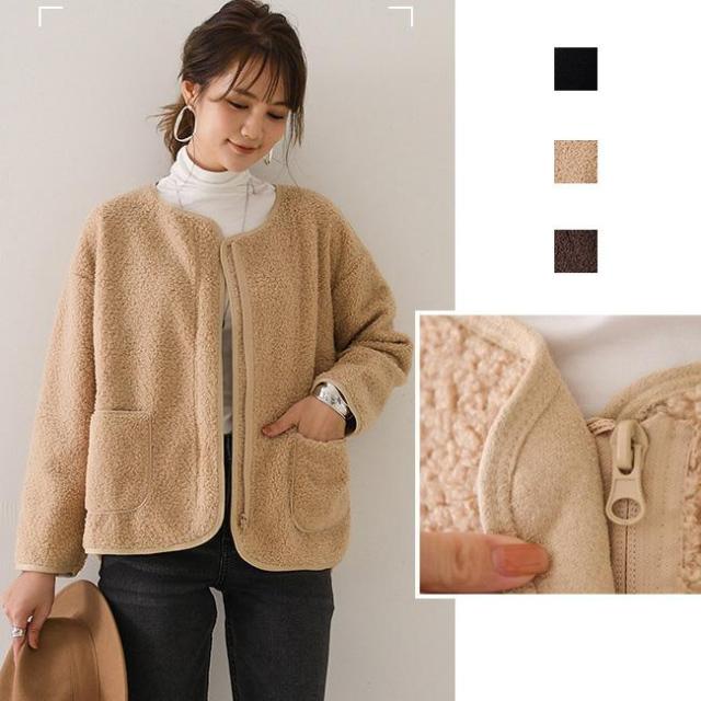 アウター ジャケット ボアジャケット ノーカラージャケット レディースジャケット あったか シンプル 無地 韓国 ファッション 長袖 レディス レディース 秋冬 新作