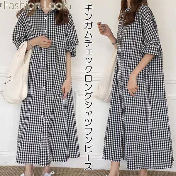 ワンピース ギンガムチェック ロングシャツワンピース チェック柄ワンピース ロング丈 ロングシャツ