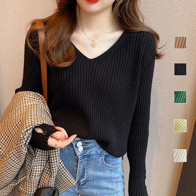 トップス ニット セーター Vネックニット カラバリ ニットトップス 長袖 レディス レディース 春秋 新作