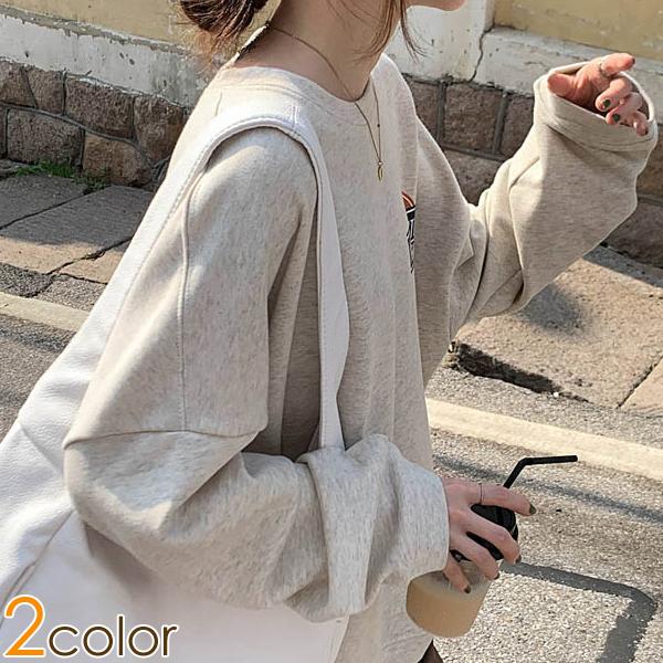 プルオーバー トップス レディース カジュアルウエア ロゴ 長袖 ゆるトップス ゆったり カジュアル