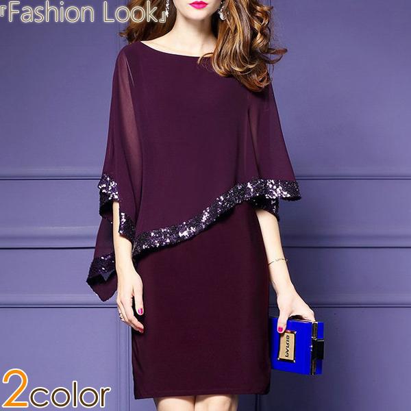 ワンピ ワンピース ドレスワンピ ドレスワンピース ケープ 透かし お洒落 スパンコール ななめ きれいめ 新作