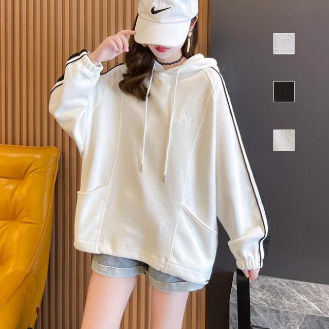 トップス パーカー パーカ フード付き 配色 ドルマン ゆるトップス プルオーバー 長袖 レディス レディース 春秋 新作