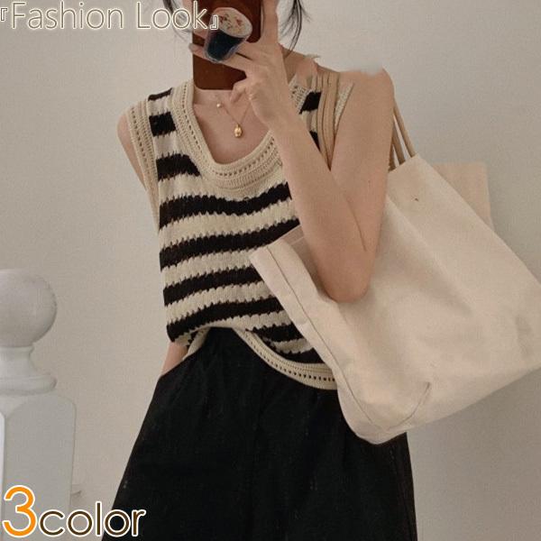 トップス ニット ニットトップス サマーニット ボーダー柄 ノースリーブ レディス レディース 夏 新作