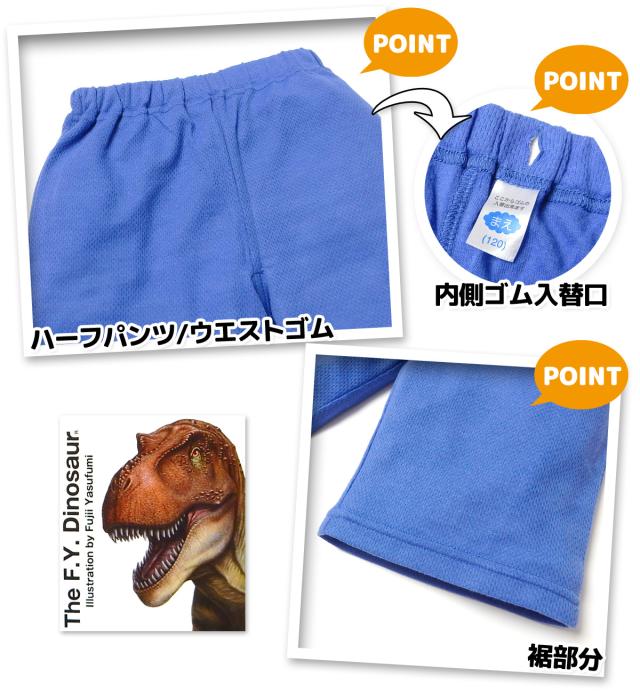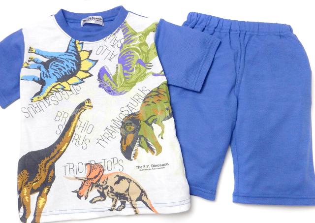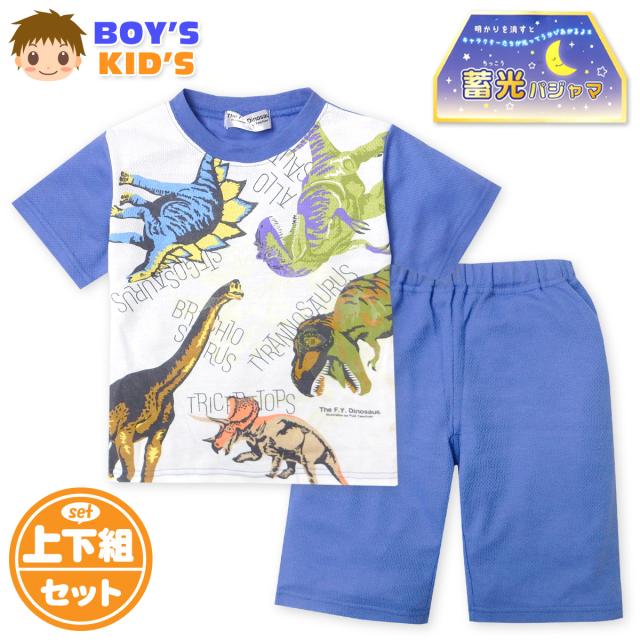 【送料無料】男児 キッズ メッシュ 半袖 光るパジャマ 恐竜 ダイナソー ハーフパンツ 上下組 蓄光 通気性 子供服 男の子 100cm 110cm 120cm 130cm yg-3027【メール便対応】