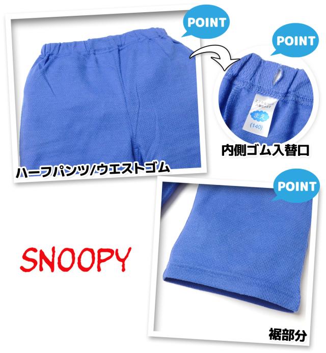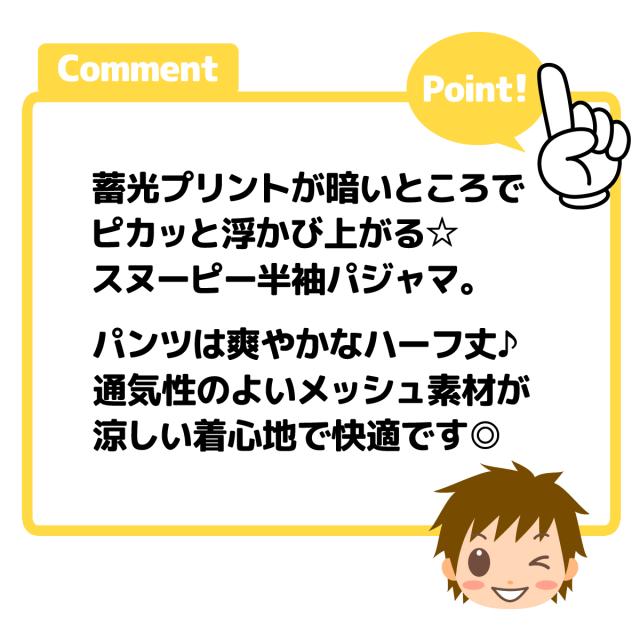 【送料無料】男児 ジュニア メッシュ 半袖 光るパジャマ スヌーピー ハーフパンツ 上下組 蓄光 通気性 子供服 男の子 140cm yg-3028【メール便対応】