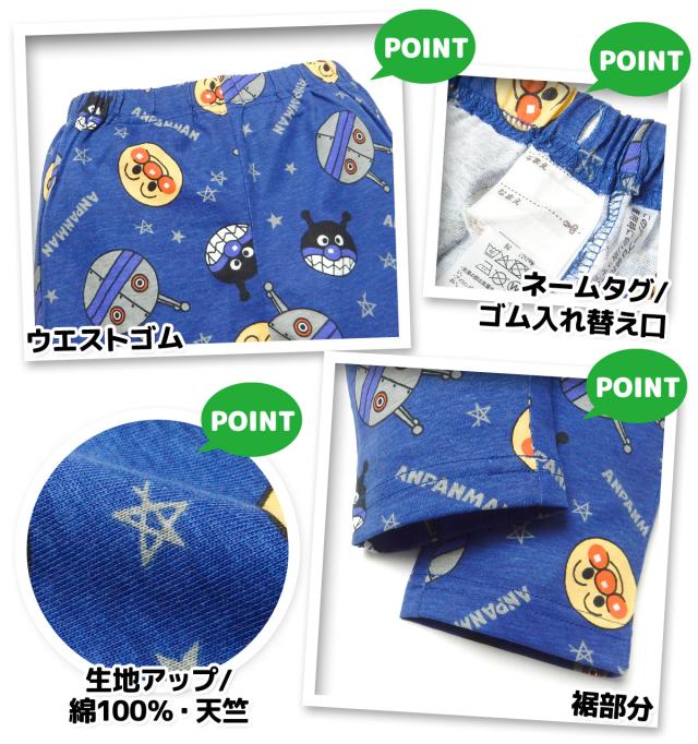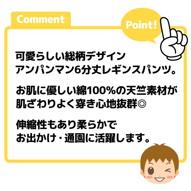 【送料無料】男児 ベビー 6分丈 レギンス パンツ アンパンマン 天竺 綿100% 総柄プリント ウエストゴム ボトムス ベビー服 男の子 80cm 90cm 95cm iw-1358【メール便対応】