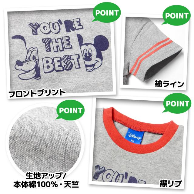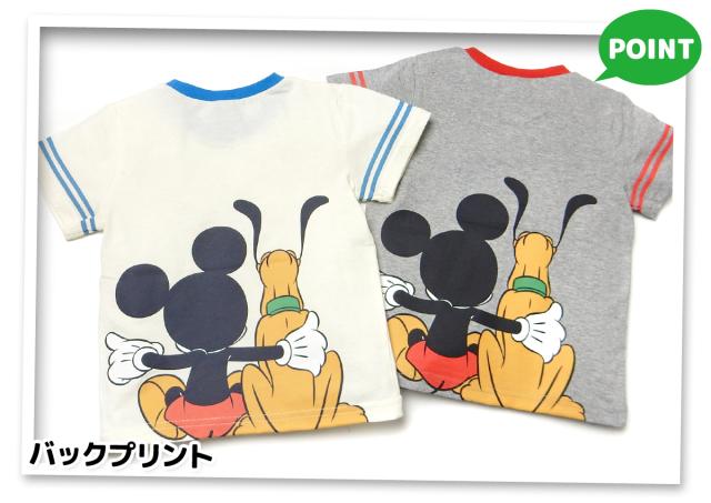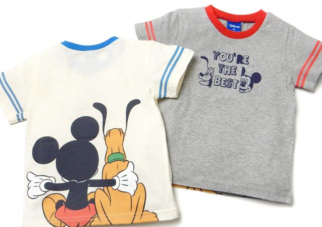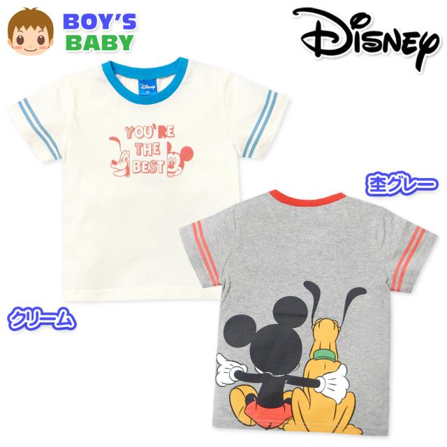 【送料無料】男児 ベビー 本体綿100% 半袖 Tシャツ Disney ディズニー ミッキーフレンズ 天竺 バックプリント 袖ライン ベビー服 男の子 80cm 90cm 95cm iw-1280【メール便対応】