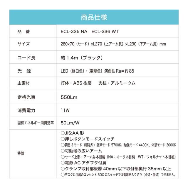 ・ 調色3モード(順送り)計算モード5700K、勉強モード4400K、休憩モード3000K