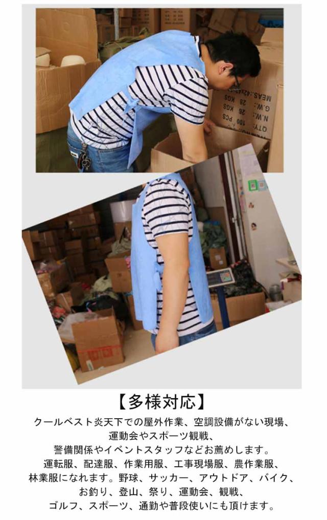 | 【電気/保冷剤不要エコ素材】吸水性と保水性がよいのPVA材を採用、冷却器不要、冷却ファン不要、保冷剤不要の熱中症対策 ベストです、水道水だけに3-5分ぐらい浸けて十分に吸水させてから利用できます。 夏場の工事現場や建築作業場などのために開発した最新品熱射病対策ベスト。 【繰り返し使用、経済的】冷却効果がなくなったと感じたら、また水に浸すだけ、冷却効果が簡単回復、吸水性が非常に高く、繰り返し洗って使えるひんやりベストです。エコかつ身体を冷やす性能と、着用動きやすさ・耐久性・便利性・軽い性が認められている熱中症対策 グッズです。 【ご使用方法】冷たい氷水に5分間浸して、あるいは冷蔵庫に入れて、水分をたっぽり含ませて軽く絞るだけ、冷却効果があります。(常温でも効果はございます。) 3?6時間にわたって冷却効果があります。 【多様対応】クールベスト炎天下での屋外作業、空調設備がない現場、運動会やスポーツ観戦、警備関係やイベントスタッフなどお薦めします。運転服、配達服、作業用服、工事現場服、農作業服、林業服になれます。野球、サッカー、アウトドア、バイク、お釣り、登山、祭り、運動会、観戦、ゴルフ、スポーツ、通勤や普段使いにも頂けます。 | |