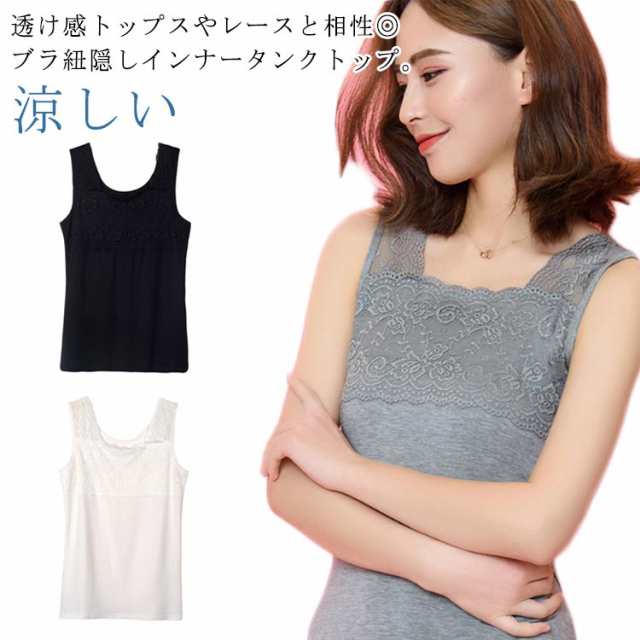送料無料 ブラ紐隠しインナー タンクトップ 胸元レース レディース 肩紐広め タンク インナー トップス ノースリーブ レースキャミソール ブラ紐を隠せるインナー チラ見せ モダール ストレッチ 快適 肌着 夏 涼しい かわいい シンプル