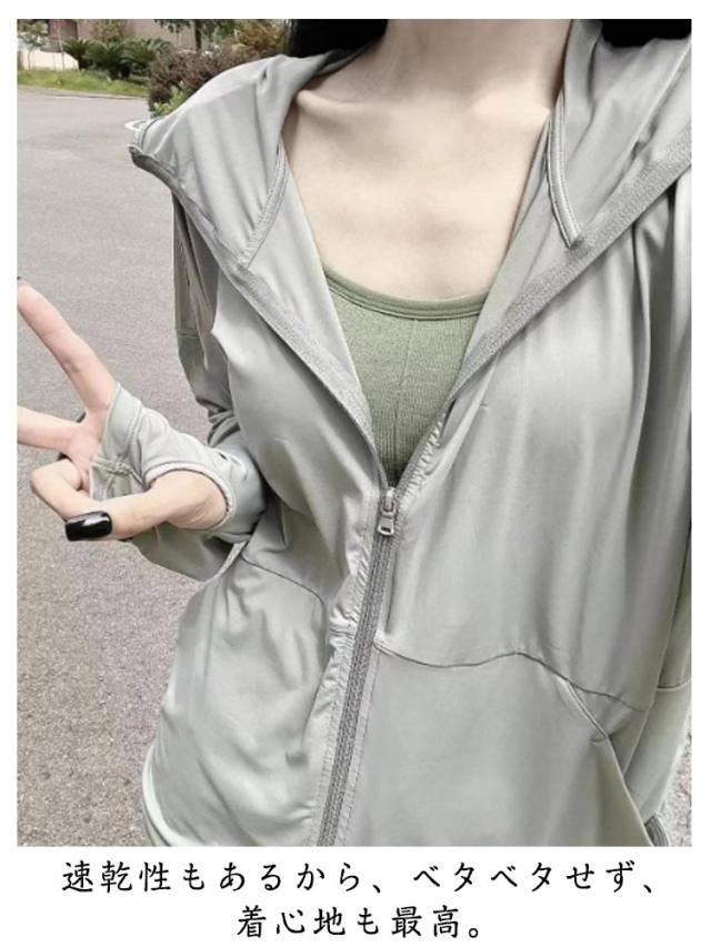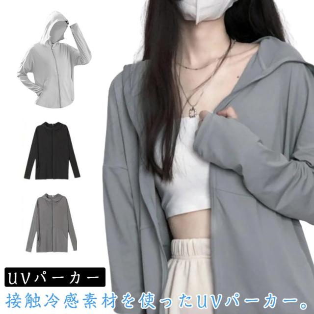 UVパーカー uvカット パーカー ラッシュガード アウトドア レディース 接触冷感 フード付き 紫外線カットおしゃれ 涼しい 無地 ジップアップ 薄手 体型カバー 通気性 長袖 ラッシュパーカー 夏