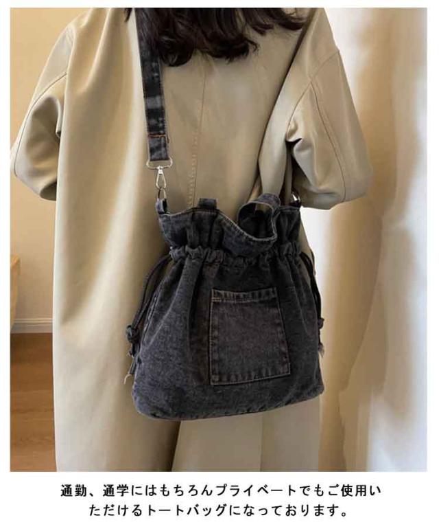 デニム バッグ トート ショルダーバッグ レディース 大きめ 巾着 ショルダー キャンバス 軽量 大容量 A4 斜めかけ デニムバッグ 巾着バッグ トートバッグ デニム 肩掛け 鞄 カバン デニムトート 大人 カジュアル おしゃれ かわいい