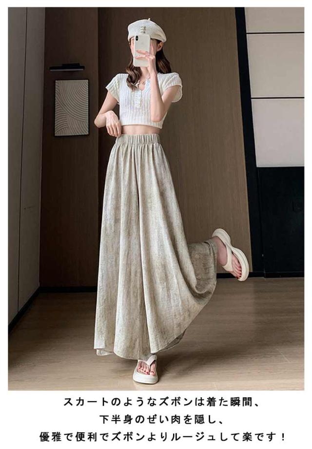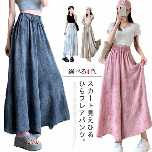 | スカート見えひるひらフレアパンツ。 スカートのようなズボンは着た瞬間、下半身のぜい肉を隠し、優雅で便利でズボンよりルージュして楽です! 痩せ見え、体型を美しく演出する動きやすく、快適な履き心地を実現。 足元はヒールからローシューズ、サンダルまで幅広くあいます♪ 程よいヌケ感を演出してくれるので、カジュアルコーデにぴったり! | |