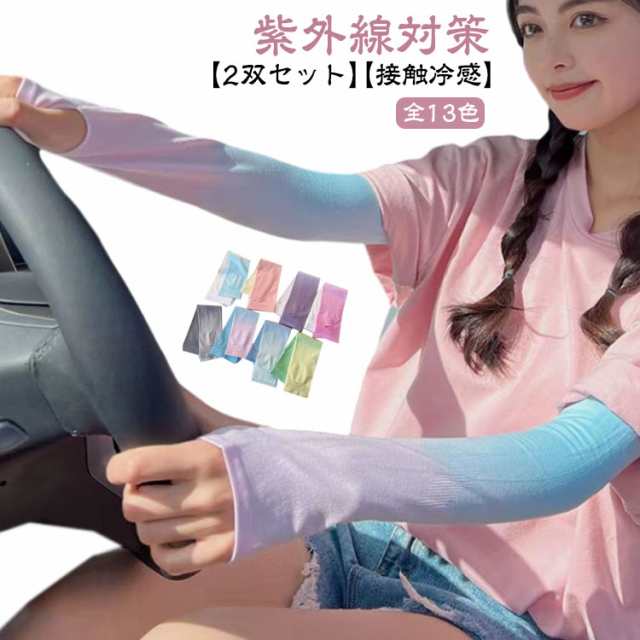 UV UVカット 2双セット アーム レディース アームカバー 冷感 ひんやり 吸汗速乾 接触冷感 2双セット カバー 伸縮性 フィット感 通気性 涼しい 腕カバー スポーツ 紫外線 日焼け対策 ゴルフ タトゥー隠し グラデーション おしゃれ