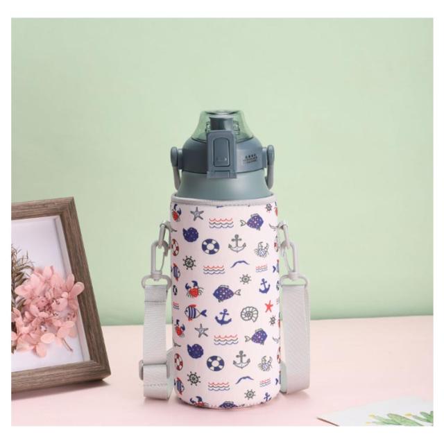 | 軽くて丈夫、そして水に強いはっ水機能の水筒カバー! 耐久性のある素材なので、水筒カバーにピッタリ。 衝撃吸収に優れた素材を使用しているため、ボトルを衝撃や傷から守ってくれます。 丁寧に縫われており、水筒を入れると、しっかりと自立します。 子どもに使いやすい工夫がいっぱい ショルダーベルトは長さ調節が可能です。 | |