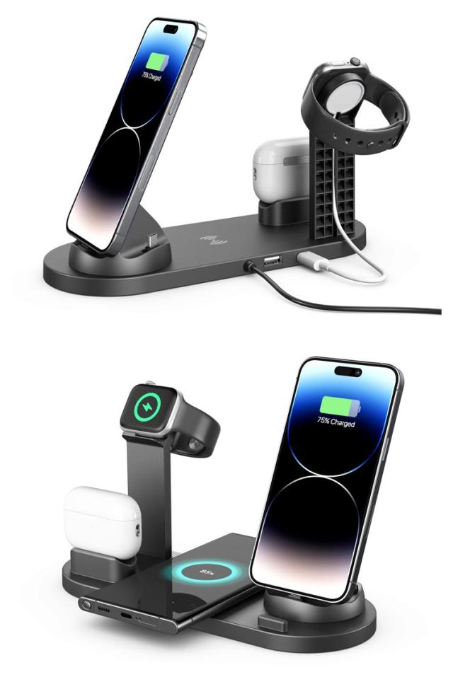 | サイズについての説明 | 入力:DC5V-3A 9V-2A 充電アダプター出力:DC 5V-2A ワイヤクス出力:5W-7.5W-10W-15W(MAX) イヤホン出力:5W スマートウォッチ出力:3W 梱包サイズ:245 * 109 * 58mm 重量:約260g ポイント:1.360度回転可能 2.iphone/micro/Type-C 3-in-1 ワイヤレス充電 |