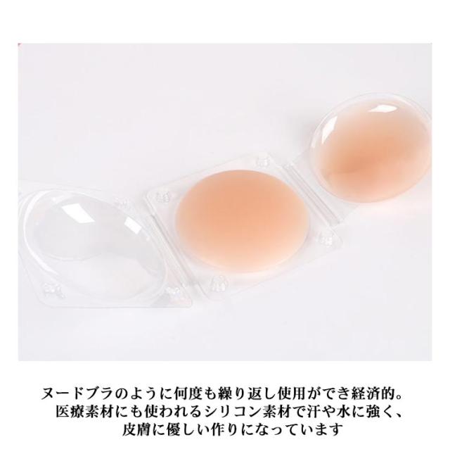 | 【シリコン製ニップレス】やわらかいシリコンでバストトップを隠してくれる新感覚タイプ。 Tシャツや薄着、胸元の開いた服装の際に、乳首が透けるのを防ぐエチケットアイテムです。 【ピタッとかんたん着用】ペタッと貼るだけでしっかりバストトップを隠してくれる簡単着用。 しっかりした粘着性で汗をかいても剥がれにくい。 トップ部分のみを隠すので蒸れにくく、開放感がある服装にもご利用いただけます。 汗をかいたり汚れた場合は水洗いして再度利用可能で経済的 【繰り返し利用可能】ヌードブラのように何度も繰り返し使用ができ経済的。 医療素材にも使われるシリコン素材で汗や水に強く、皮膚に優しい作りになっています 【透けにくいカラー】肌に近い色ですので着用していることがわかりにくく、安心して付けられます。 スポーツ時などに起こる乳首擦れの対策にも。 | |