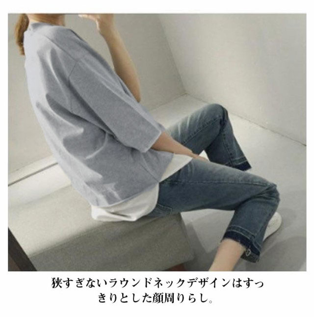 | 重ね着風の5分袖tシャツ。 狭すぎないラウンドネックデザインはすっきりとした顔周りらし。 レイヤード風のドッキング設計はカジュアルスタイルにぴったり。 余裕を持つシルエットも動きやすい。 普段着はもちろん、部屋着としても快適にお使いいただけます。 | |