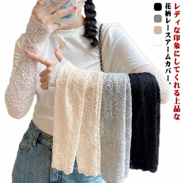 | レディな印象にしてくれる上品な花柄レースアームカバー。 肘あたりから手の甲までレースデザイン生地でお洒落にカバー!プラスするだけでコーデが華やかに。 さらっと涼し気シースルー、通気性が良いので暑くても快適な着け心地。 アームスリーブとしても使えて袖からちら見せしても可愛い。 Tシャツやシャツ、ニットなどと合わせるだけで華やかになり、いつもとは違った印象に。 お買い物等のデイリーシーンはもちろん、スポーツやアウトドア等にも着用できます。 | |