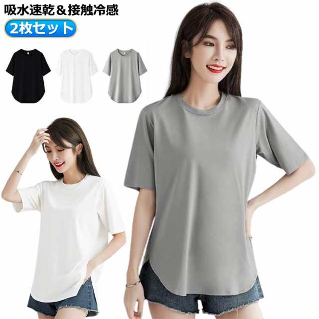 2枚セット!Tシャツ 汗ジミ防止 半袖 冷感Tシャツ ラッシュガード カットソー tシャツ 無地 通気性 オーバーサイズ 体型カバー UVカット トップス 夏 汗染み対策 ストリート 速乾 レディース 接触冷感 2枚セット!Tシャツ 軽量 ドライ 薄手 涼しい おしゃれ