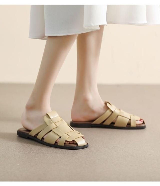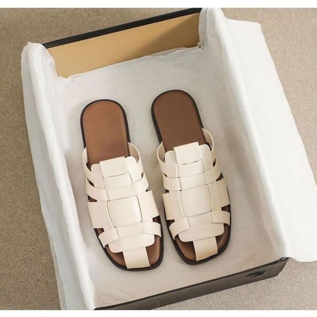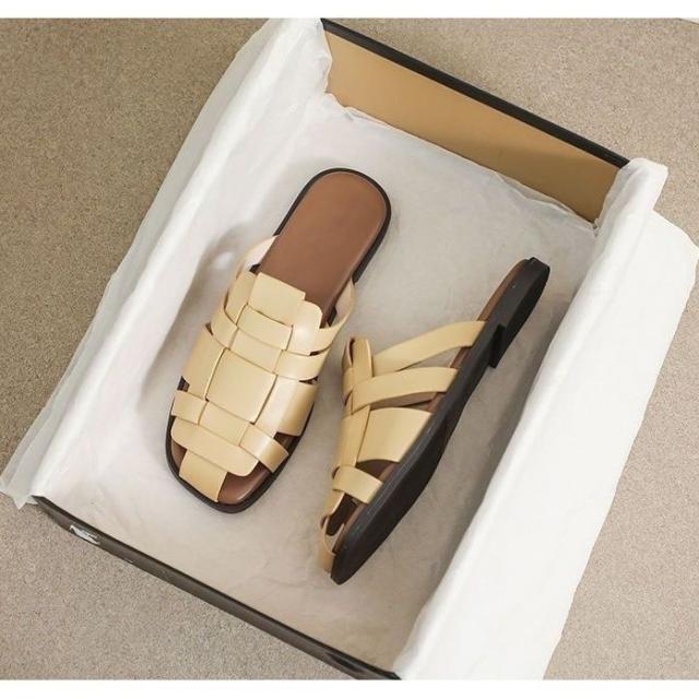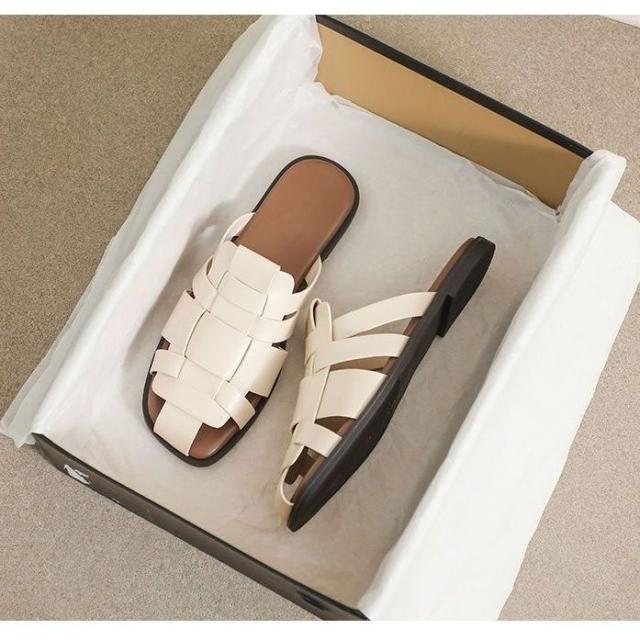 メッシュサンダル グルカサンダル サンダル 編み込み スクエアトゥ スポーツ フラットシューズ ペタンコ ローヒール レディース フラット ミュール