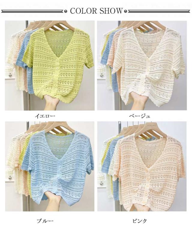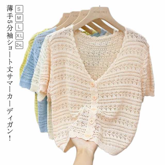サマーニット サマーカーディガン レディース 半袖 カーディガン レディース サマーカーディガン 五分袖 Vネック 無地 薄手 透け感 ショート丈 ショートカーディガン ボタン付き 重ね着 レイヤード 冷房対策 お洒落 カジュアル キレイめ