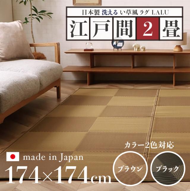 い草風ラグ LALU 江戸間2畳 幅174 奥行174cm ブラウン ブラック 日本製 国産 洗えるペット対応ラグ 畳風ラグ 夏 ラグ 洗える ペットラグ ラグ ペット用 防水 軽量 傷防止 和モダン ラグマット ゴザ ラグマット ゴザ 寝ござ 夏ラグ 夏用