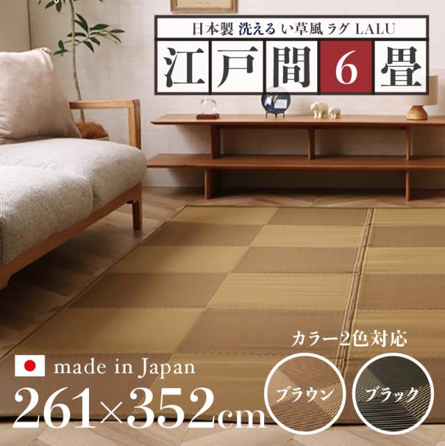 い草風ラグ LALU 江戸間6畳 幅261 奥行352cm ブラウン ブラック 日本製 国産 洗えるペット対応ラグ 畳風ラグ 夏 ラグ 洗える ペットラグ ラグ ペット用 防水 軽量 傷防止 和モダン ラグマット ゴザ ラグマット ゴザ 寝ござ 夏ラグ 夏用