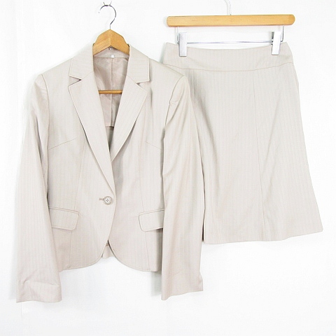 【中古】WHITE JOOLA ホワイトジョーラ セットアップ ジャケット スカート 膝丈 ストレッチ レーヨン 40 ベージュ